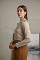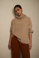 Confeccionada en tela tejida Izzy, esta chompa con pretina destaca por su cuello drapeado que cae suavemente en la parte delantera. Un estilo holgado, cómodo y abrigador.