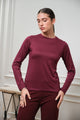 Confeccionada en tela viena, esta blusa destaca por su cuello ojal, mangas anchas de estilo murciélago y elástico en el puño que permiten caer la mangas de forma relajada.